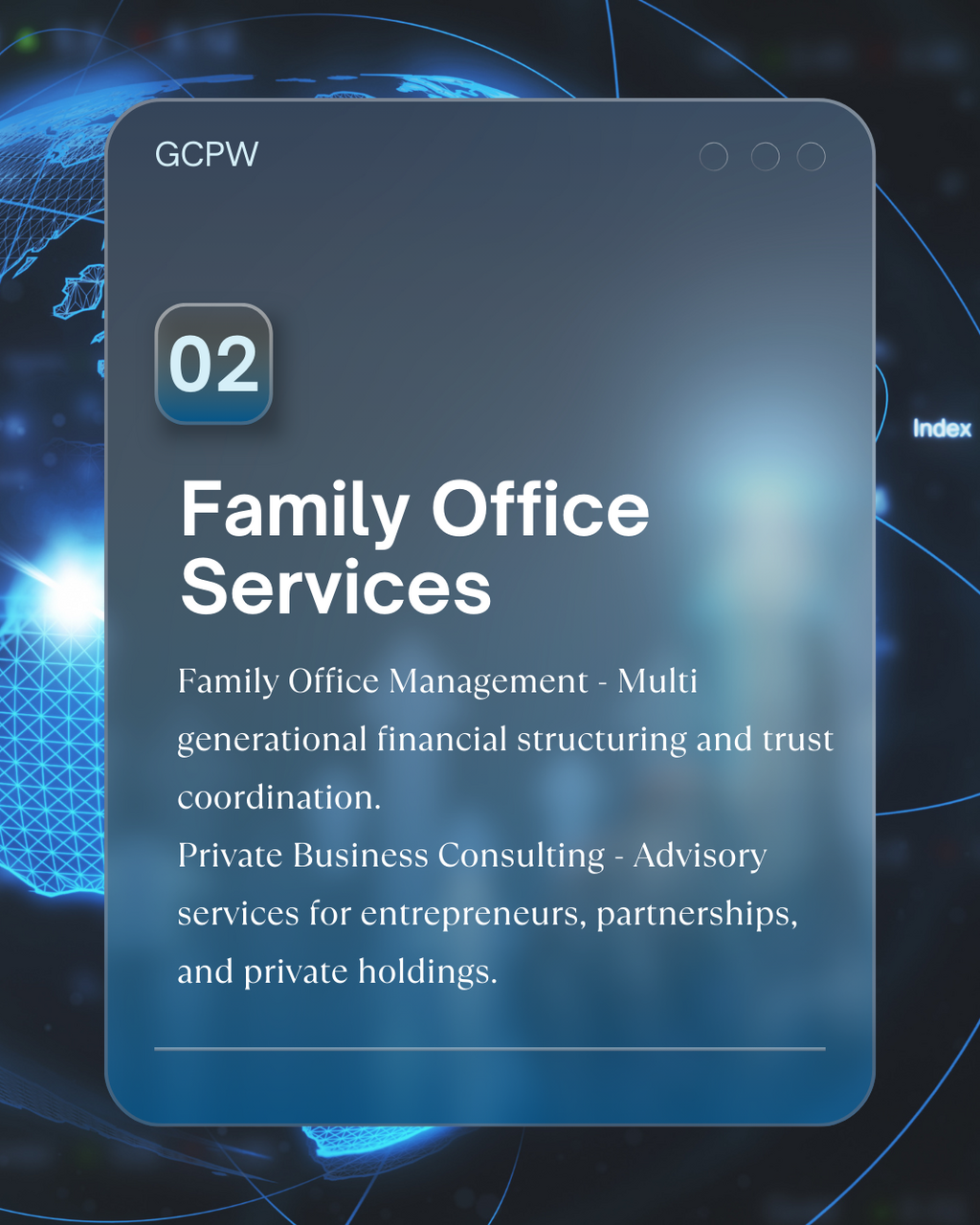 Rooted in integrity and defined by discretion, our mission is to help clients protect, manage, and grow their wealth through thoughtful planning, disciplined management, and a long-term vision.